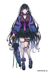 紫を基調とした神秘的なビジュアルデザインは、イラストレーターのドルストイさんによるもので、光と影の繊細な表情描写が本当に美しいんです。誕生日は2月21日で、好きなものとしてはダークな雰囲気のアニメやゲームが挙げられます。
